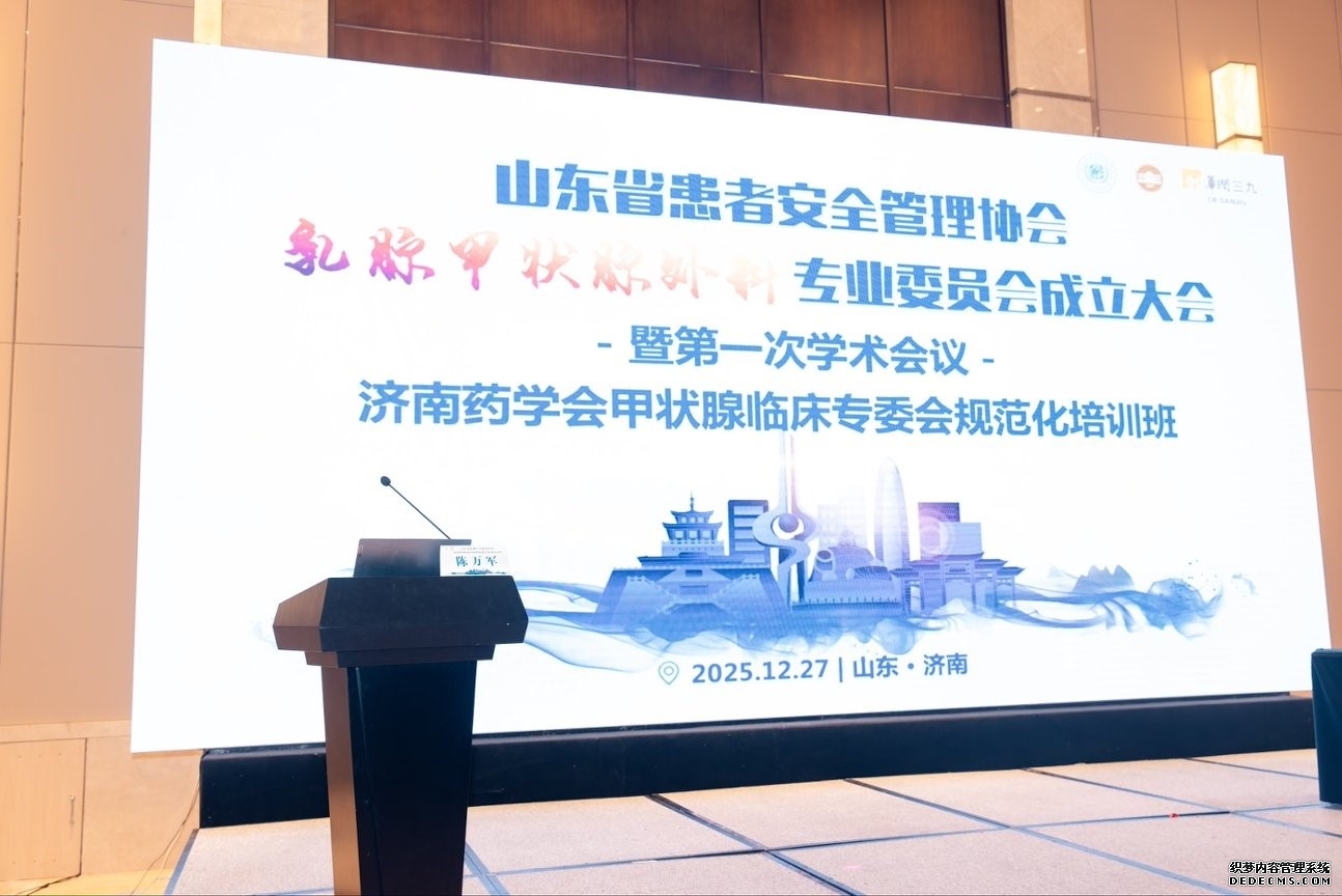 2025年12月27日,山东省患者安全管理协会乳腺甲状腺外科专业委员会成立大会暨济南药学会甲状腺临床专委会规范化培训班在济南富力凯悦酒店顺利召开。本次大会由田兴松教授担任大会主席,吕伟教授担任执行主席,汇聚省内外乳腺甲状腺外科领域专家学者,共同见证专业委员会成立,探讨学科发展前沿议题。